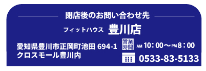 長らくフィットハウスヴェルサウォーク西尾店をご愛顧いただきまして、誠にありがとうございます。